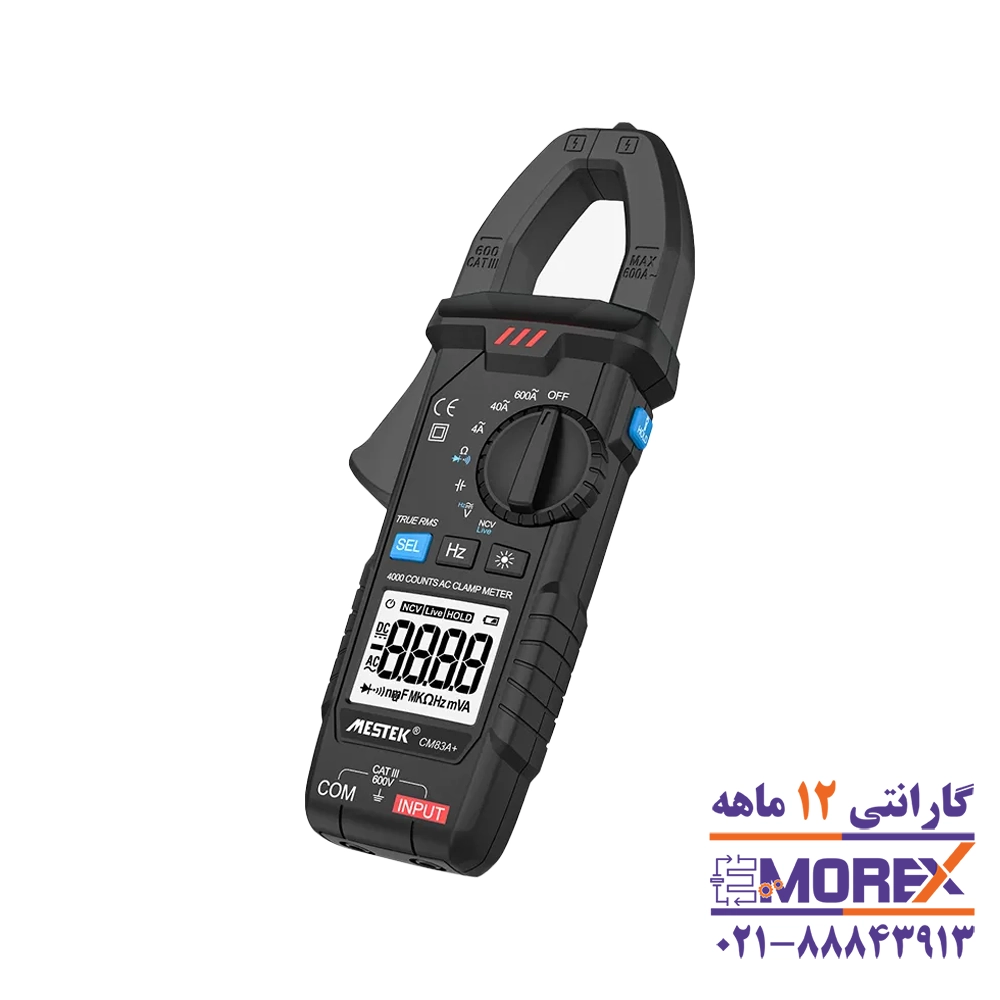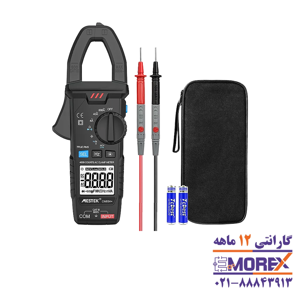 مولتی متر دیجیتالی کلمپی مستک | MESTEK مدل CM83A PLUS با قابلیت اندازهگیری جریان AC/DC تا 600 آمپر، ولتاژ تا 1000 ولت، و امکانات پیشرفتهای مانند اندازهگیری هارمونیکها، جریان راهاندازی و تشخیص فاز، مناسب برای استفاده در سیستمهای صنعتی و محیطهای دارای درایو فرکانس متغیر است.