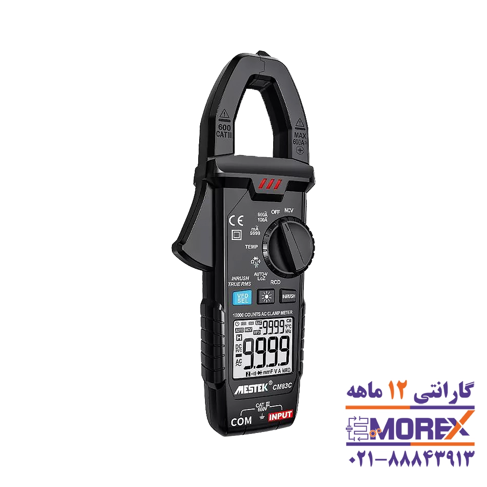 مولتی متر دیجیتالی کلمپی مستک | MESTEK مدل CM83C ابزاری دقیق و چندمنظوره برای اندازهگیری جریان، ولتاژ، دما و تست ولتاژ غیرتماسی است. این دستگاه با طراحی ارگونومیک، نمایشگر با وضوح بالا و قابلیتهای پیشرفته، انتخاب مناسبی برای متخصصان برق و مهندسان فنی است.