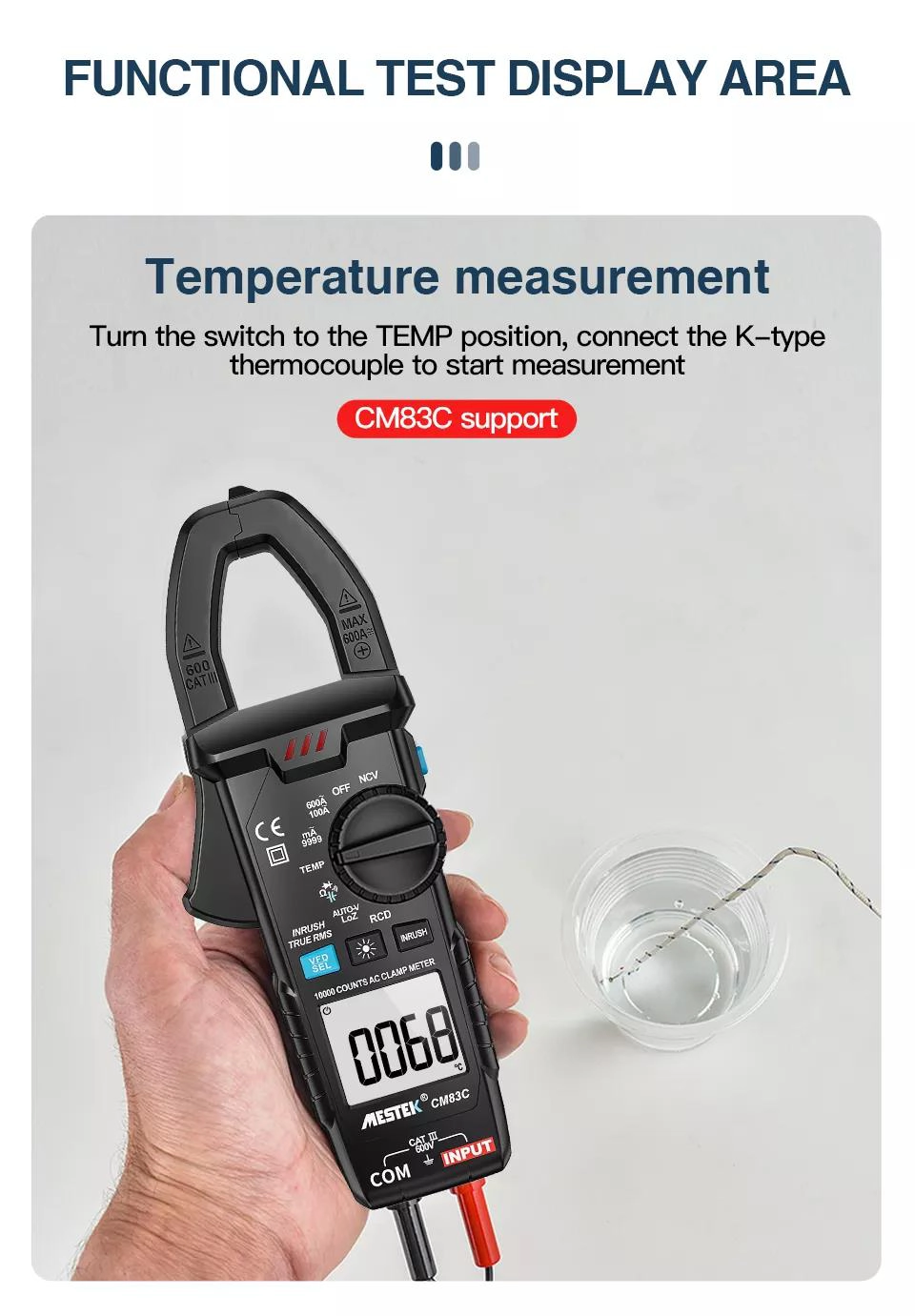 مولتی متر دیجیتالی کلمپی مستک | MESTEK مدل CM83C به دلیل طراحی ارگونومیک و ویژگیهای کاربردی، انتخابی ایدهآل برای صنایع برق، تعمیرات و مهندسان فنی است. وجود تست ولتاژ غیرتماسی (NCV) باعث افزایش ایمنی هنگام کار با برق شده و قابلیت اندازهگیری دما با استفاده از پراب دمایی موجود در کیف دستگاه، دقت بالایی در تشخیص دما ارائه میدهد.