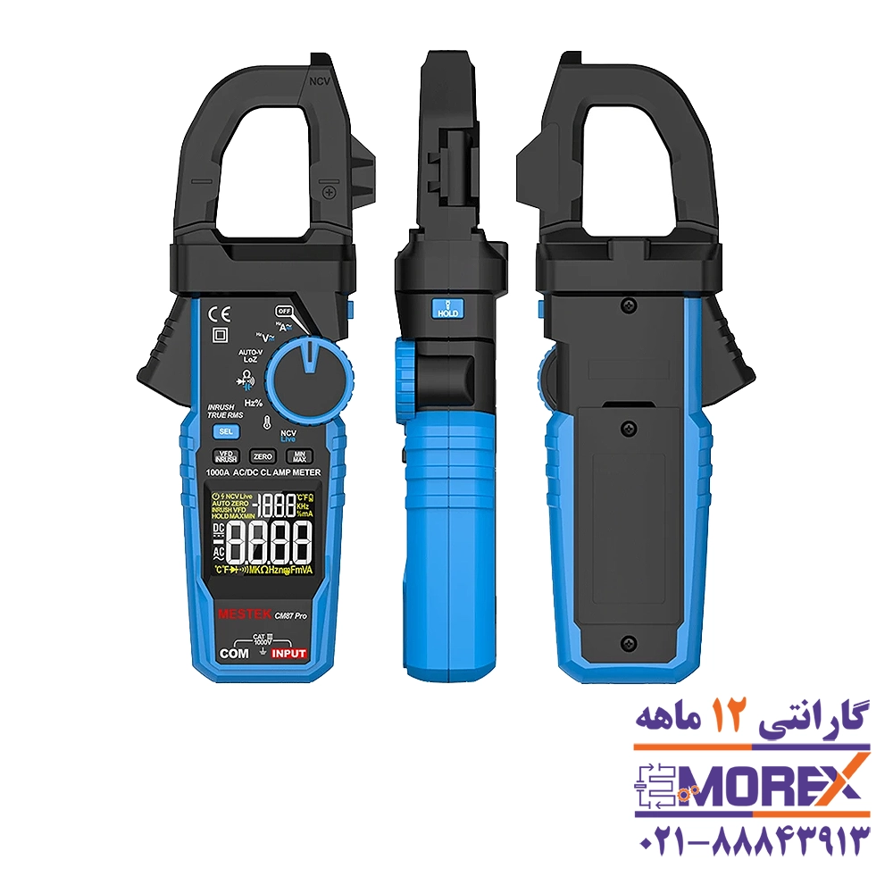مولتی متر کلمپی دیجیتال مستک | MESTEK مدل CM87 PRO، یک ابزار حرفهای اندازهگیری است که قابلیت اندازهگیری جریان تا 1000 آمپر، ولتاژ AC و DC، تست دما، مقاومت، فرکانس و ظرفیت خازنی را با دقت بالا و فناوری True RMS ارائه میدهد. این دستگاه مناسب تکنسینها، مهندسان و تعمیرکاران صنعتی است.