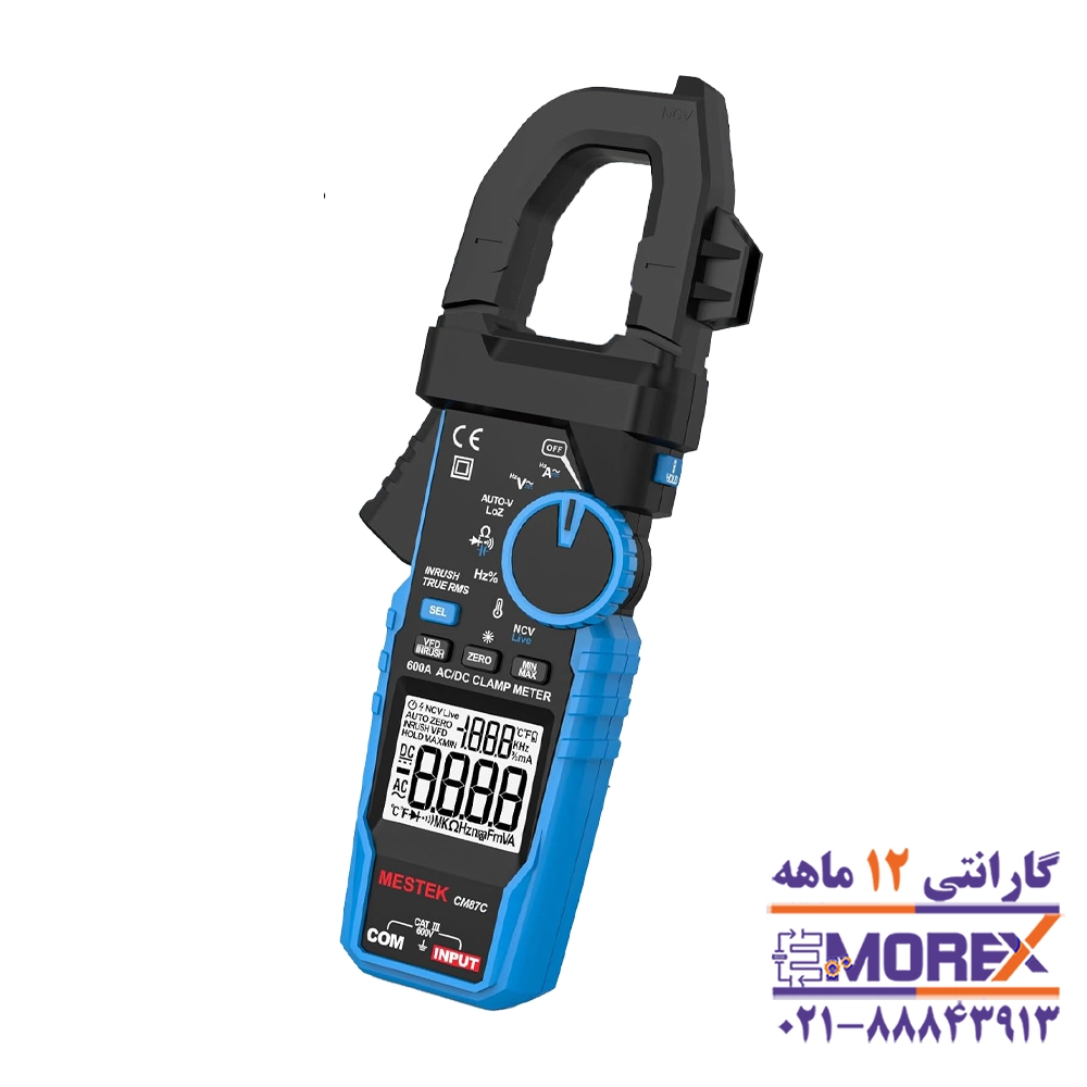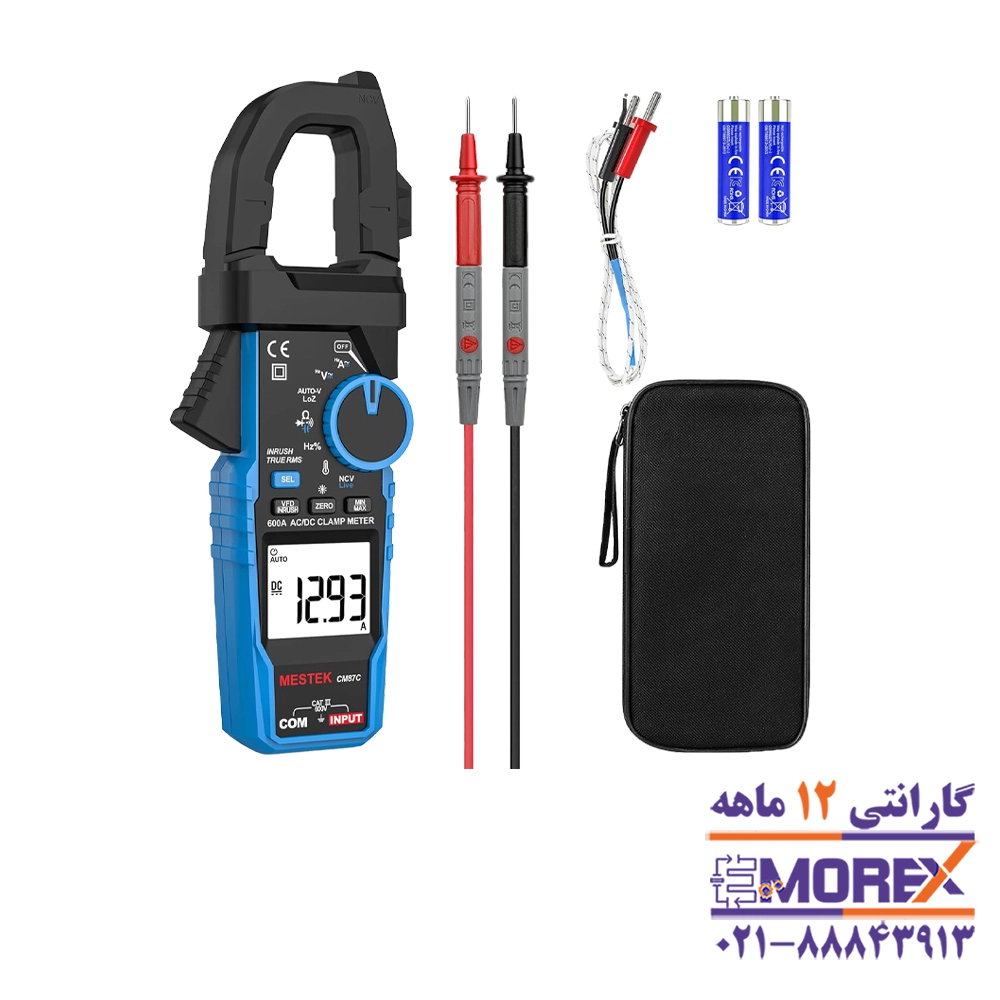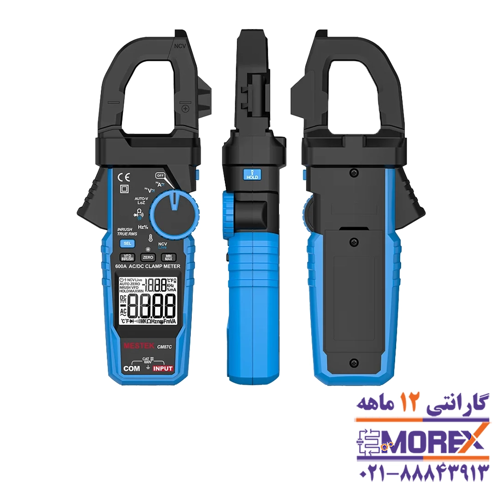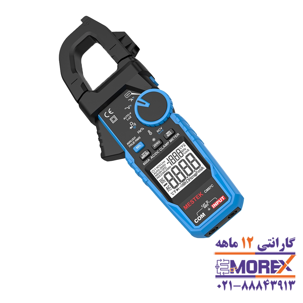 مولتی متر کلمپی دیجیتال مستک | MESTEK مدل CM87C، یک مولتی متر کلمپی با عملکرد True RMS، سنجش جریان هجومی (Inrush)، ولتاژ پایین (LoZ)، اندازهگیری دما تا 1000°C، و قابلیت تست بدون تماس (NCV) است که برای برقکاران، تکنسینهای صنعتی و تعمیرکاران موتور بسیار مناسب است.