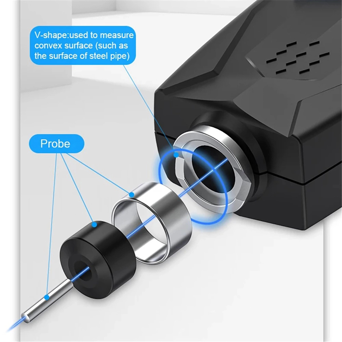 بدنه ضخامت سنج رنگ دیجیتال مستک | MESTEK مدل CT02C از پلاستیک نرم و مقاوم در برابر سایش ساخته شده و طراحی آن به گونهای است که به راحتی در دست قرار میگیرد. ضخامت سنج رنگ دیجیتال مستک | MESTEK مدل CT02C دستگاهی دقیق با قابلیت تشخیص خودکار نوع فلز، نمایشگر روشن، کالیبراسیون سریع و طراحی ارگونومیک است که برای سنجش پوشش رنگ روی سطوح فلزی کاربرد دارد. قابلیت شناسایی خودکار نوع فلز پایه را دارد؛ نمایش “Fe” بیانگر بستر مغناطیسی (مانند فولاد و آهن) و نمایش “NFe” نشاندهنده بستر غیرمغناطیسی (مثل آلومینیوم، آلیاژ آلومینیوم و مس) است.