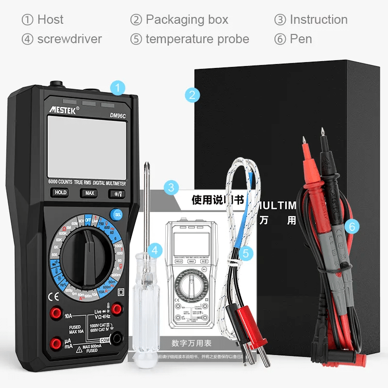 مولتی متر دیجیتالی مستک مدل DM96C با دقت بالا قادر به اندازه‌گیری ولتاژ، جریان، مقاومت، خازن و دما است. این ویژگی‌ها موجب می‌شود که دستگاه در پروژه‌های مختلف به عنوان ابزاری دقیق و قابل اعتماد شناخته شود.