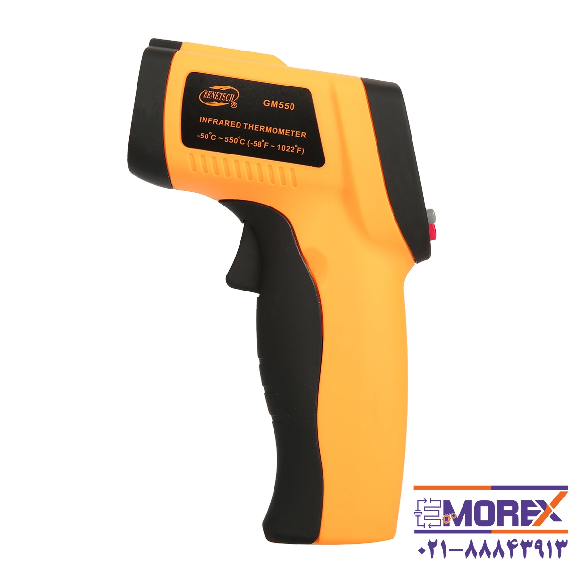 ترمومتر لیزری بنتک | BENETECH مدل GM550 یکی از ابزارهای دقیق و کاربردی برای اندازهگیری دمای سطح اجسام بهصورت غیرتماسی است. این دستگاه با بهرهگیری از فناوری مادون قرمز، دما را بدون نیاز به تماس فیزیکی با سطح، اندازهگیری کرده و روی نمایشگر LCD با نور پسزمینه نمایش میدهد.