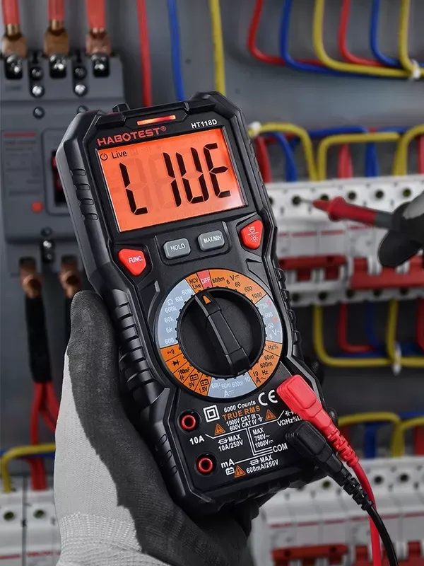 مولتی متر دیجیتال هابوتست | HABOTEST مدل HT118D یک ابزار حرفهای و پیشرفته برای اندازهگیری دقیق پارامترهای الکتریکی است. این دستگاه با قابلیت True RMS امکان سنجش دقیق ولتاژها و جریانهای غیرسینوسی را فراهم کرده و برای کاربردهای صنعتی، تعمیرگاهی و آزمایشگاهی طراحی شده است.