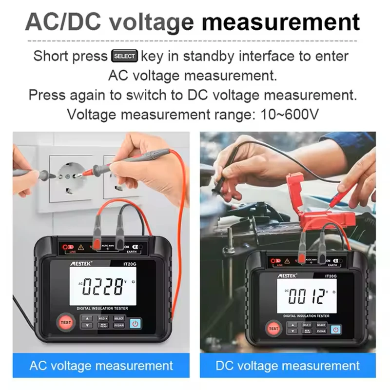 | ولتاژ تست | 250V / 500V / 1000V / 2500V |