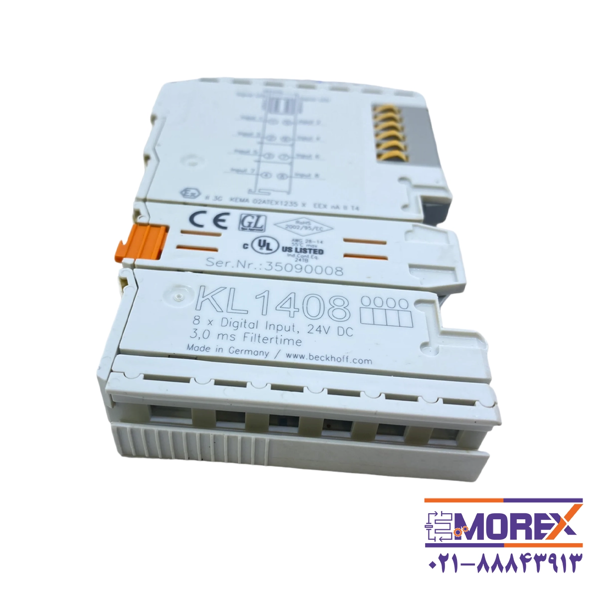 ترمینال باس بکهوف | BECKHOFF مدل KL1408 یک ورودی دیجیتال 8 کاناله 24V DC با طراحی فشرده و سازگار با سیستم Bus Terminal بکهوف است. این مدل با فیلتر داخلی، ایزولاسیون 500V و نشانگرهای LED برای هر کانال، راهکاری استاندارد برای خواندن سیگنالهای دیجیتال در پروژههای اتوماسیون صنعتی محسوب میشود.