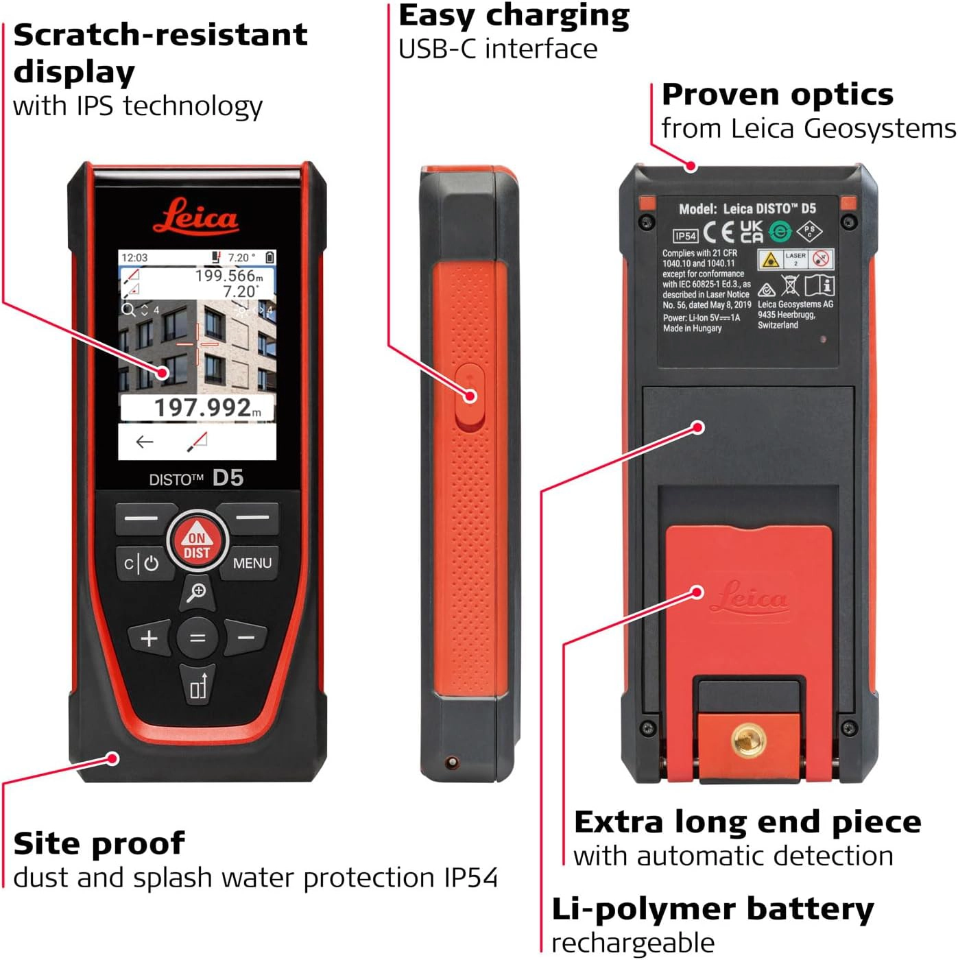 متر لیزری لایکا | LEICA مدل D5 NEW 200M یکی از محصولات پیشرفته در حوزه ابزارهای اندازهگیری لیزری است که با امکانات بهروز، کارایی بالا و دقت مناسب، برای پروژههای صنعتی و ساختمانی طراحی شده است.