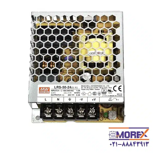 منبع تغذیه 24 ولت 2.2 آمپر مینول | MEAN WELL مدل LRS-50-24 با طراحی کمحجم، عملکرد قابل اعتماد و توان 52.8 وات، گزینهای ایدهآل برای کاربردهای سبک صنعتی و پروژههای کنترلی است.