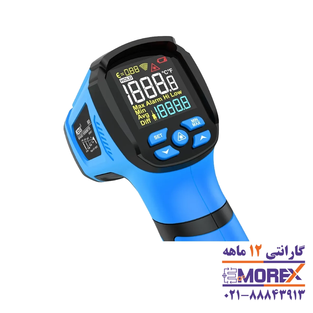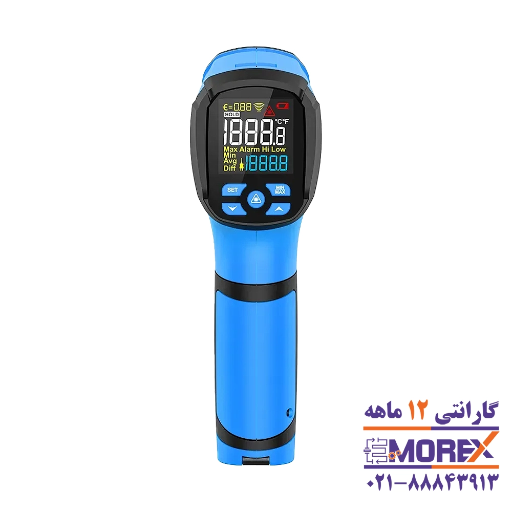 | قابلیت ها | تنظیم ضریب تابش (0.10~1.00)، اندازهگیری دما با ترموکوپل نوع K، نگهداری داده ها و… |
