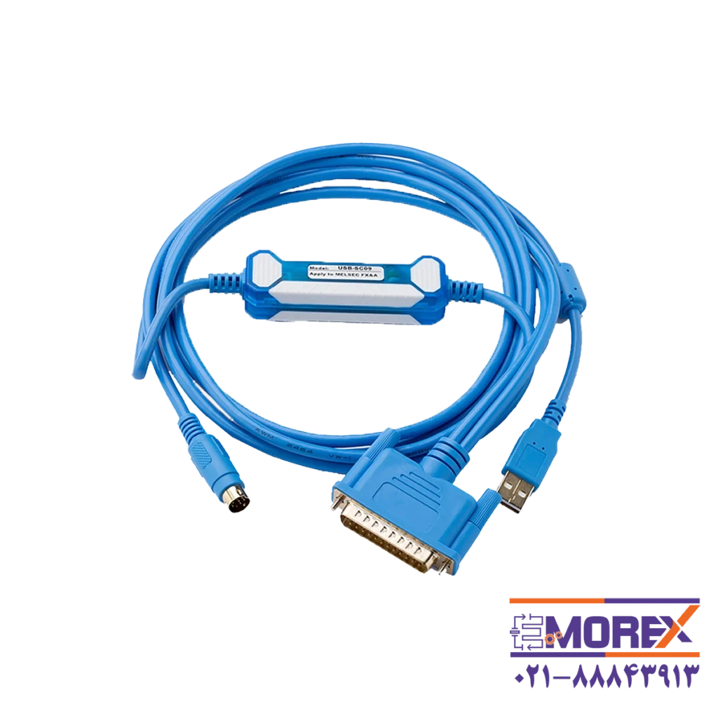 کابل پروگرام آمساموشن | AMSAMOTION مدل Mitsubishi PLC کد USB-SC09 یک کابل ارتباطی حرفهای برای برنامهنویسی کنترلرهای منطقی قابل برنامهریزی Mitsubishi سری FX و A است. این کابل با تبدیل USB به RS422، امکان برقراری ارتباط پایدار، سریع و دقیق بین کامپیوتر و PLC را فراهم کرده و قابلیت جایگزینی با ماژول FX-232AW را دارد.
