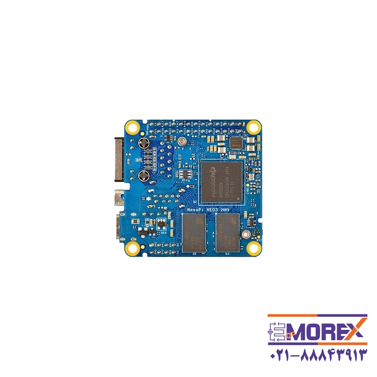 برد نانو پای | NANO PI مدل NEO3 2G یک برد توسعه قدرتمند و جمعوجور بر پایه پردازنده چهار هستهای ARM Cortex-A53 64-bit با فرکانس تا 1.3GHz است. این برد دارای 2GB رم DDR4 بوده و حافظه داخلی ندارد، اما با استفاده از کارت MicroSD تا ظرفیت 128GB امکان ذخیرهسازی دادهها فراهم میشود.