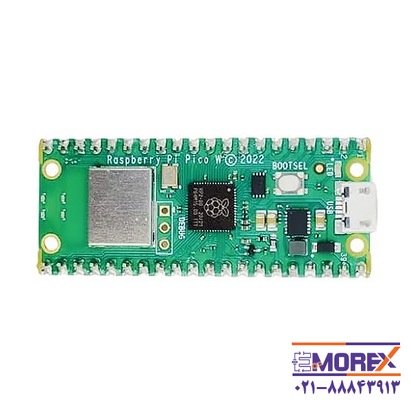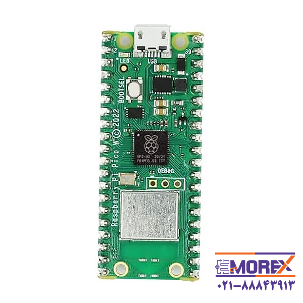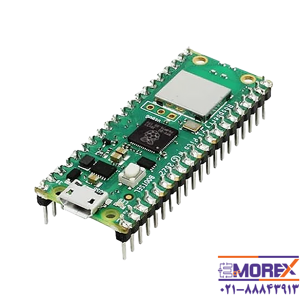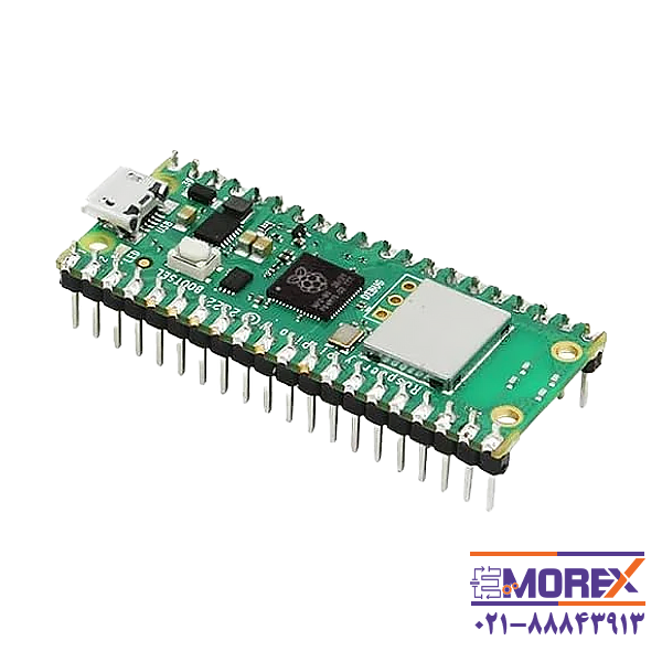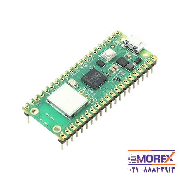 برد رزبری پای | RASPBERRY PI مدل PICO W Headers نسخهای از رزبری پای پیکو است که علاوهبر پردازنده دو هستهای RP2040 و حافظه داخلی، از ماژول Wi-Fi پشتیبانی میکند و مجهز به هدرهای لحیمشده آماده برای اتصال سریع سنسورها و ماژولهای مختلف است.