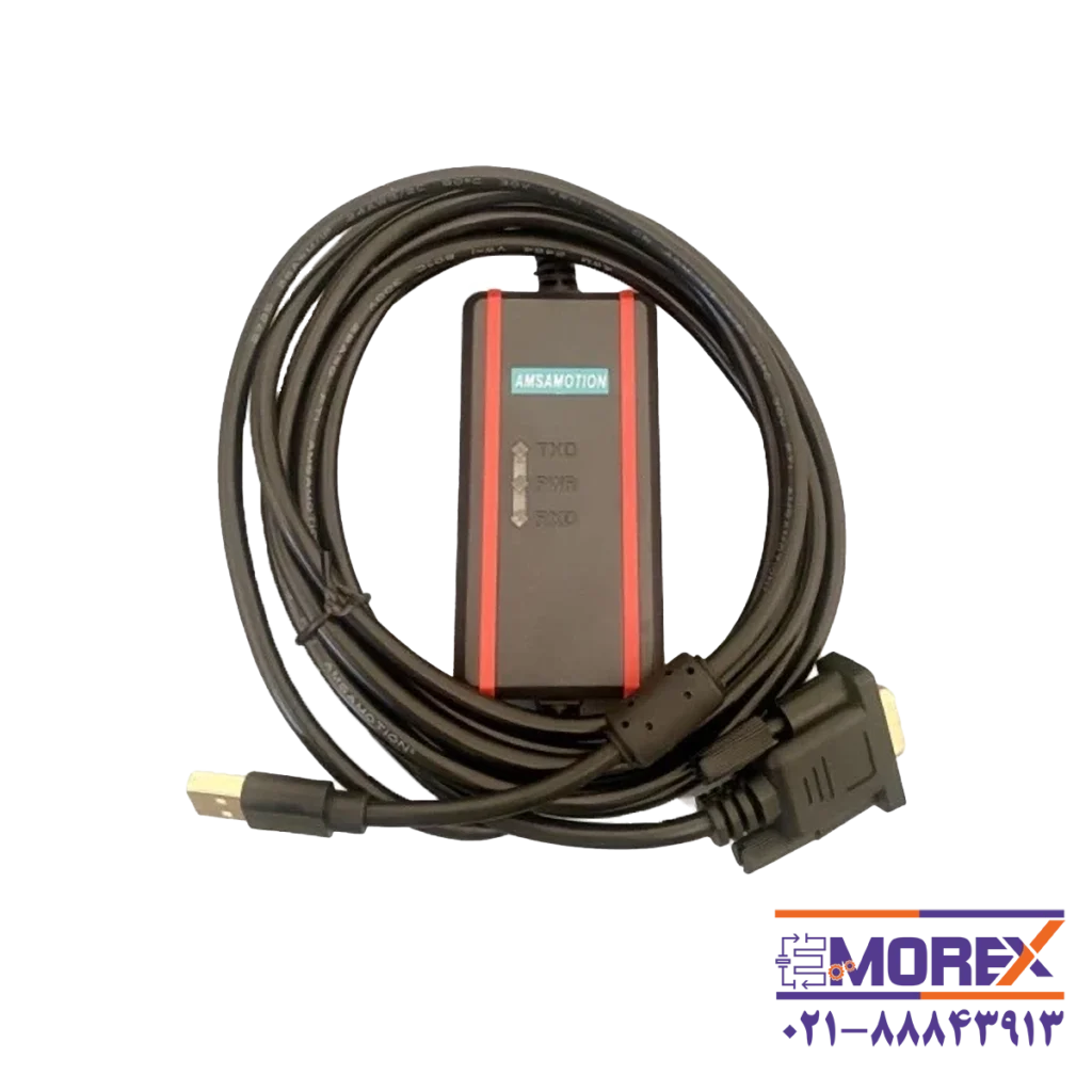 کابل پروگرام آمساموشن | AMSAMOTION مدل Mitsubishi PLC کد USB-FX232-CAB-1+ یک کابل برنامهنویسی USB به سریال است که برای اتصال پنلهای لمسی Mitsubishi سری F940، F930 و F920 به کامپیوتر استفاده میشود و امکان برنامهریزی و پیکربندی از طریق نرمافزار میتسوبیشی را فراهم میکند.