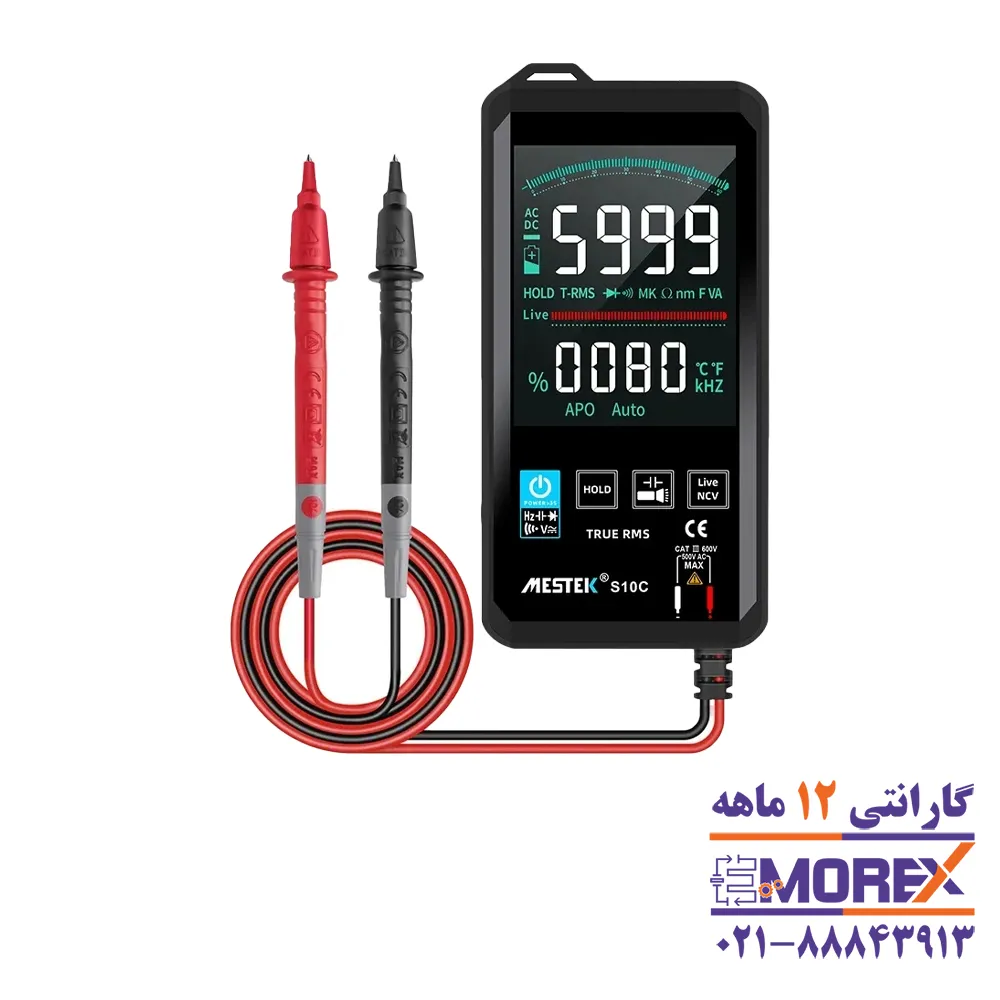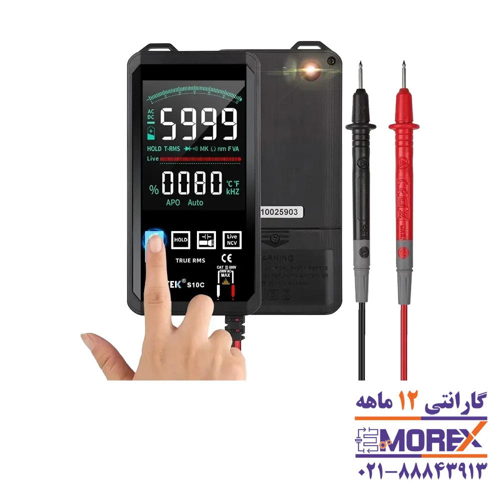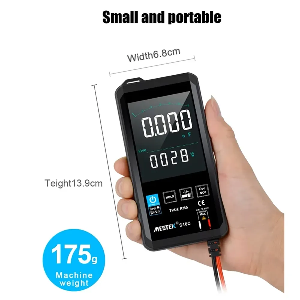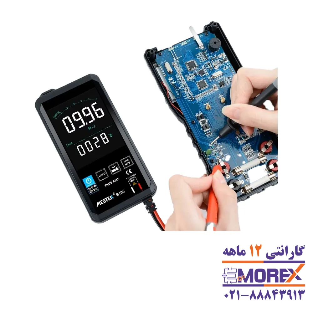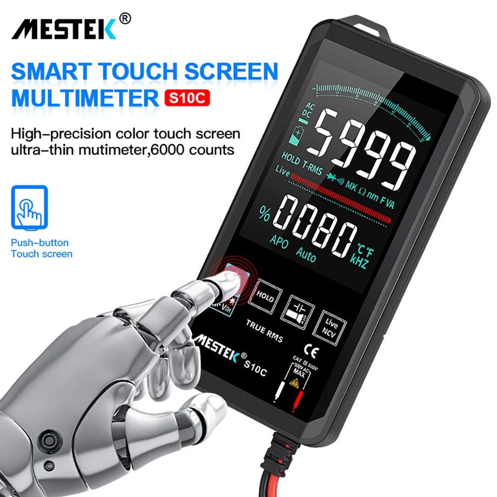 مولتی متر دیجیتالی مستک | MESTEK مدل S10C با طراحی جمعوجور، نمایشگر لمسی رنگی 4.7 اینچی و قابلیتهای پیشرفتهای مانند NCV، true RMS و تشخیص خودکار اندازهگیری، انتخابی مناسب برای تست بردهای الکترونیکی و مصارف دقیق در محیطهای آموزشی و صنعتی است.