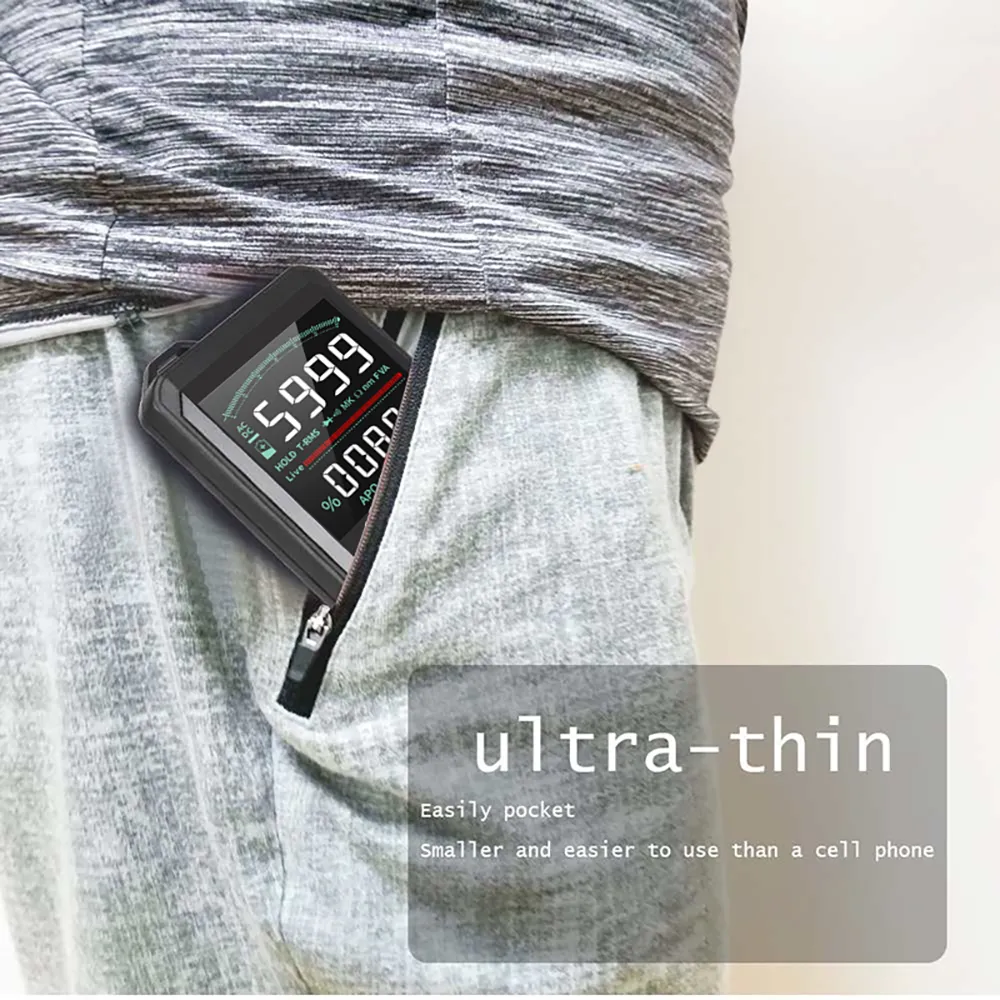 این مولتیمتر دیجیتالی با طراحی فوقالعاده باریک و ارگونومیک، استفاده را برای کاربر سادهتر کرده است. بدنه سبک در کنار رابط لمسی به شما اجازه میدهد تنها با لمس صفحه نوع اندازهگیری را تغییر دهید. برخلاف بسیاری از مولتیمترهای سنتی، نیازی به چرخاندن سلکتور یا اتصال دستی پراپ نیست.