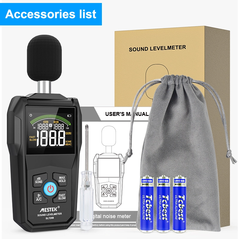 صوت سنج دیجیتالی مستک | MESTEK مدل SL720B ابزاری دقیق و کاربردی برای اندازهگیری سطح صدا در محیطهای مختلف است. این دستگاه به گونهای طراحی شده که بتواند سطوح نویز از 30 تا 130 دسیبل را با دقت بالا اندازهگیری کند و در صنایع گوناگون مورد استفاده قرار گیرد.