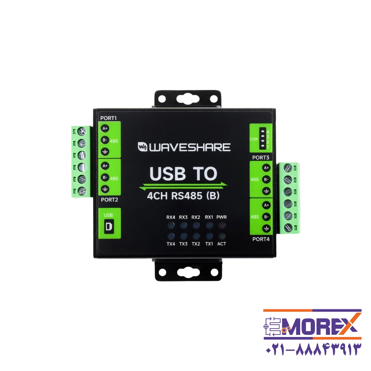 مبدل صنعتی USB به سریال ویوشیر | WAVESHARE مدل USB TO 4CH RS485 (B) به راحتی امکان اتصال به تجهیزات صنعتی و MCUها را فراهم میکند و با نصب آسان و پشتیبانی از سیستمعاملهای مختلف، یک انتخاب مطمئن برای ارتقاء سیستمهای سریال به USB محسوب میشود.