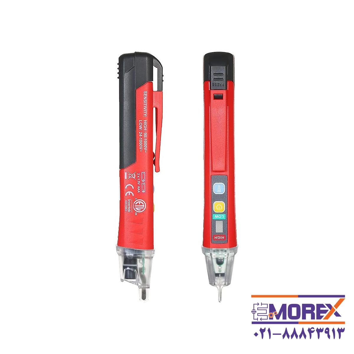 تستر ولتاژ یونی تی | UNI-T مدل UT12D یک قلم تست حرفهای با قابلیت تشخیص ولتاژ AC بدون تماس، بازه عملکرد 24 تا 1000 ولت، هشدارهای ترکیبی و تشخیص دیود زنر است. این دستگاه دارای دو سطح حساسیت و گواهینامههای بینالمللی ایمنی میباشد.