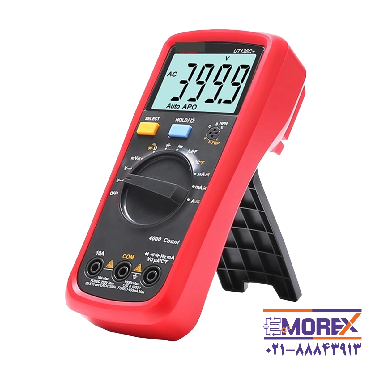 مولتی متر دیجیتال یونی تی | UNI-T مدل UT136C PLUS، یک دستگاه حرفه‌ای با عملکرد دقیق و قابلیت‌های متنوع مانند اندازه‌گیری ولتاژ، جریان، مقاومت، ظرفیت خازنی، دما و فرکانس است. این مدل از قابلیت True RMS، نمایشگر بزرگ با نور پس‌زمینه و حفاظت در برابر اضافه‌بار بهره‌مند است.