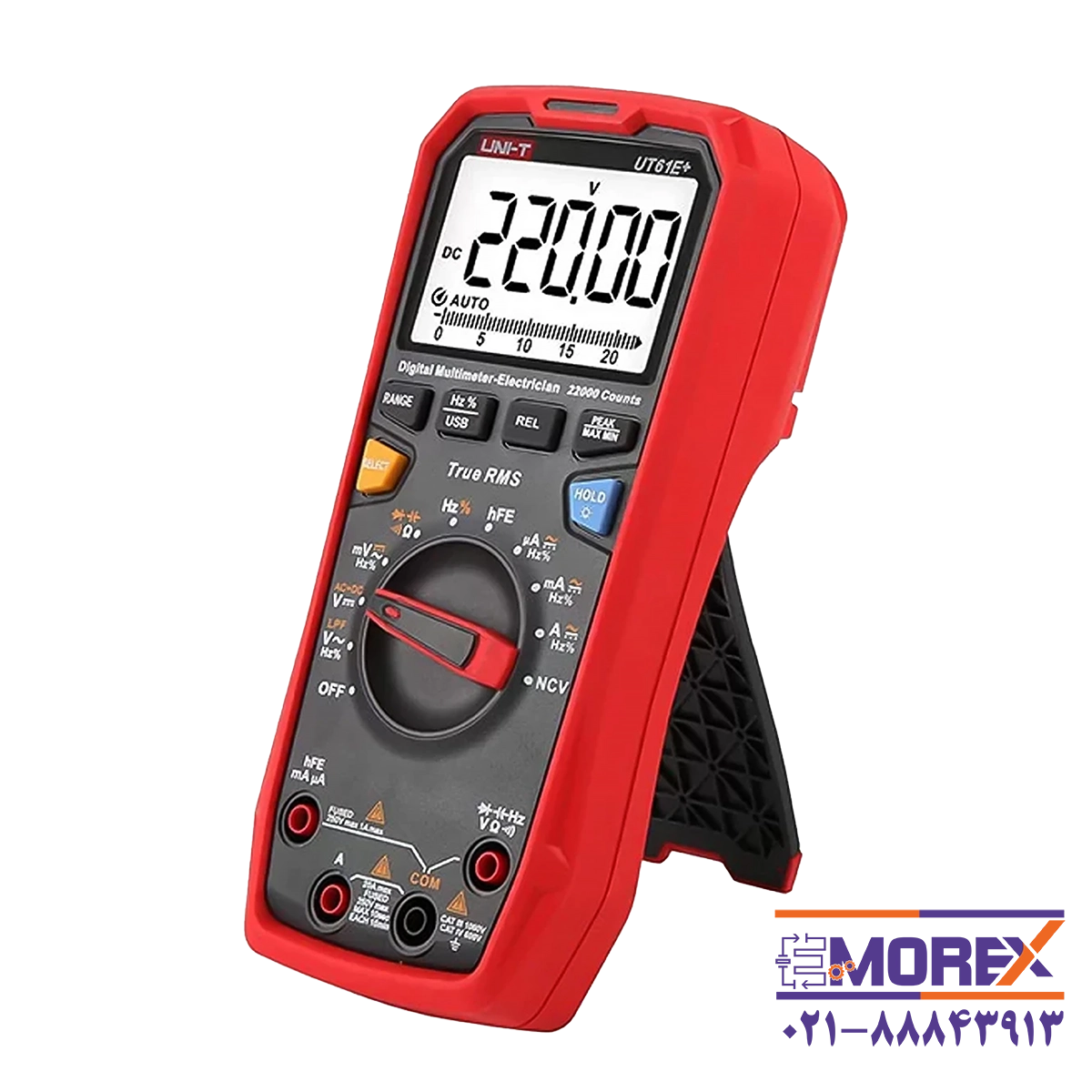 مولتی متر دیجیتال یونی تی | UNI-T مدل +UT61E یک مولتیمتر True RMS با نمایشگر 22000 کانت است که ولتاژ AC/DC تا 1000V و جریان تا 20A را با دقت بالا اندازهگیری میکند. این مدل علاوه بر NCV با هشدار دیداری/شنیداری، دارای USB برای لاگگیری و نرمافزار اختصاصی