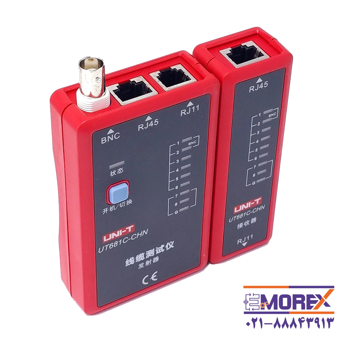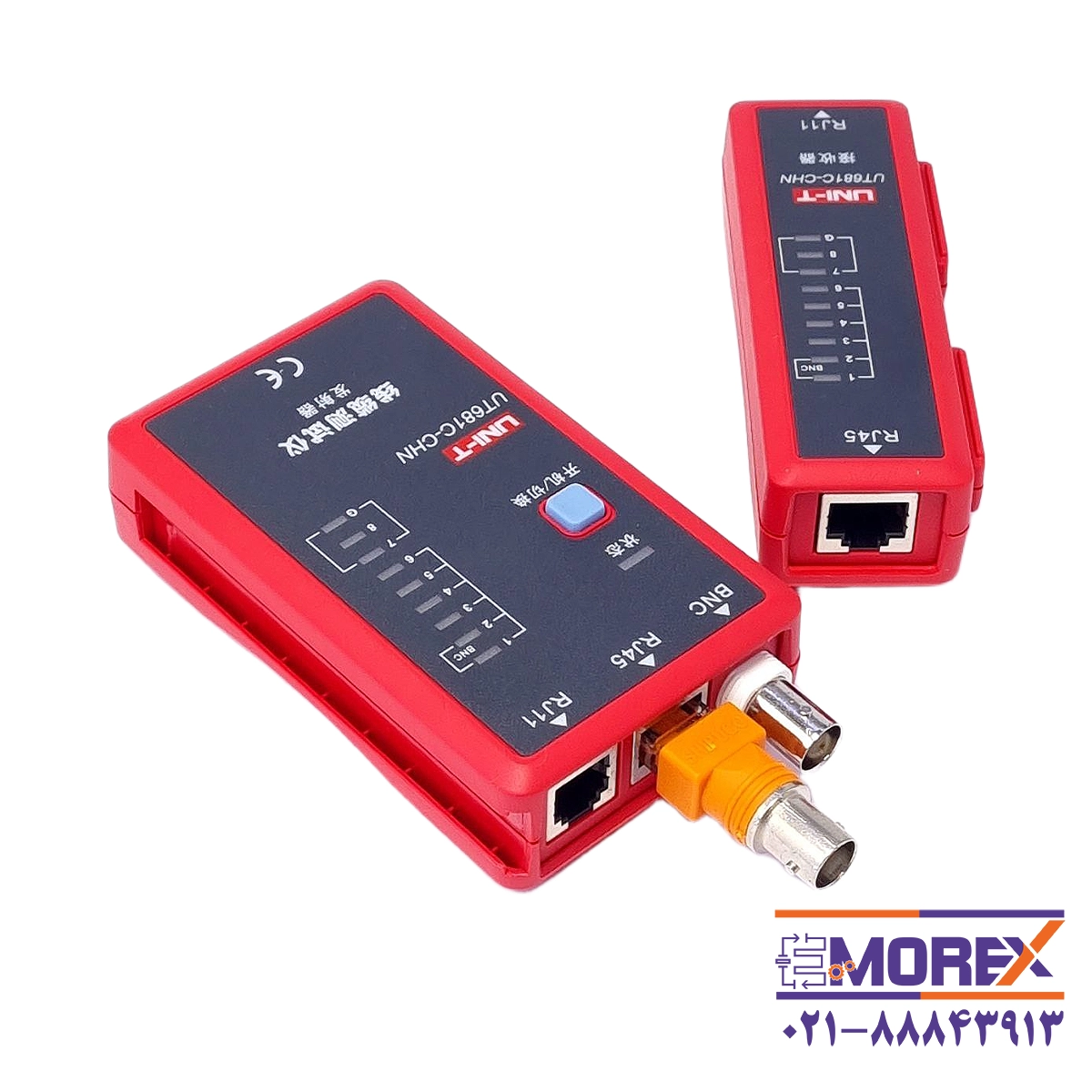 تستر کابل شبکه یونی تی | UNI-T مدل UT681C با پشتیبانی از کانکتورهای RJ45، RJ11، BNC و HDMI، امکان شناسایی سریع قطعی، جابجایی سیمها، اتصالهای نادرست یا کابلهای آسیبدیده را فراهم میسازد. استفاده از نشانگرهای LED روی دستگاه، وضعیت دقیق اتصال را بهصورت بصری نمایش میدهد که باعث افزایش سرعت و دقت در فرآیند عیبیابی میشود.