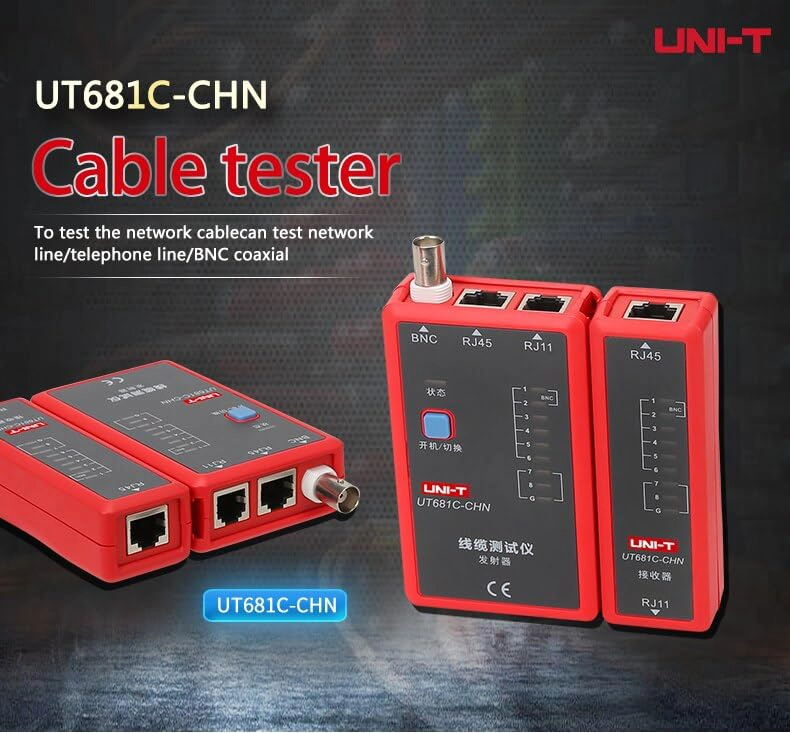 تستر کابل شبکه یونی تی | UNI-T مدل UT681C یک ابزار قابلاعتماد برای بررسی و تست اتصالات کابلهای شبکه، تلفن، HDMI و BNC است. این دستگاه با طراحی جمعوجور و استفاده آسان، انتخابی مناسب برای تکنسینها، کاربران خانگی و کارشناسان نصب سیستمهای صوتیتصویری و شبکه بهشمار میرود.