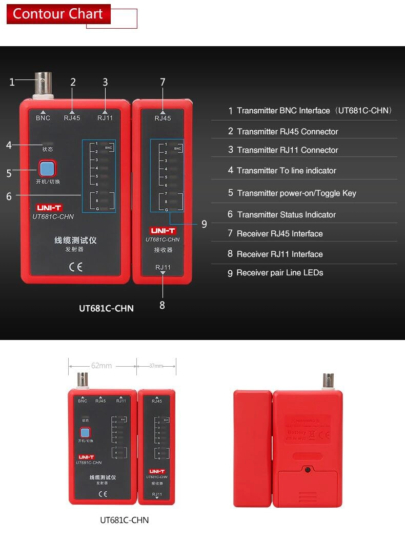 تستر کابل شبکه یونی تی | UNI-T مدل UT681C سبک و قابلحمل بوده و بدون نیاز به تنظیمات پیچیده، آماده استفاده در محیطهای کاری متنوع است. تستر کابل شبکه یونی تی مدل UT681C گزینهای ایدهآل برای نصب، نگهداری، بررسی و پشتیبانی از سیستمهای شبکه خانگی و صنعتی بهشمار میرود.