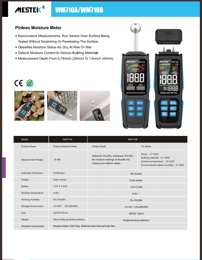✅ ویژگی‌های رطوبت سنج دیجیتال مستک مدل WM710A: